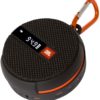 Ready to roll The JBL Wind 2 portable Bluetooth speaker was made for the road – specifically, when you hit the road with your bike. This speaker snaps into an included handlebar mount. And if you’re on foot, just latch the speaker to your backpack with the included carabiner clip. The Wind 2 is totally waterproof, so if you can stand the rain, so can the speaker. Entertainment options You can wirelessly stream music from your smartphone via Bluetooth. The Wind 2 also has a built-in FM tuner, so you could listen to the big game as you pedal through the countryside. There’s also an SD card slot, for cards up to 64GB. Load your workout playlist and start pedaling! Easy to use The Wind 2 has side-mounted control buttons. They’re indented, so you can easily find them without taking your eyes off the road. The speaker also has a stereo minijack, so when you get where you’re going, you can plug in some earbuds and kick back. The Wind 2’s built-in rechargeable battery gives you up to 10 hours of operation. And the speakers LCD display lets you clearly see what’s playing.