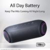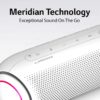 LG’s PL7, XBOOM Go portable Bluetooth speaker offers long-lasting rechargeable battery, for up to 18 hours of playback. The splash-resistant PL5 with Meridian Audio technology for richer bass and clearer vocals adds LED lights add club-style excitement. Battery life will vary with use, settings, and environmental conditions.